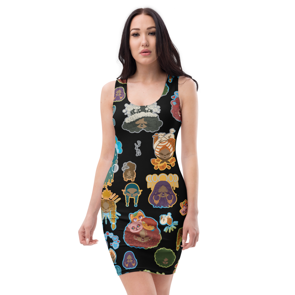 素敵な存在感のある総柄cutのフィット感あるドレス。